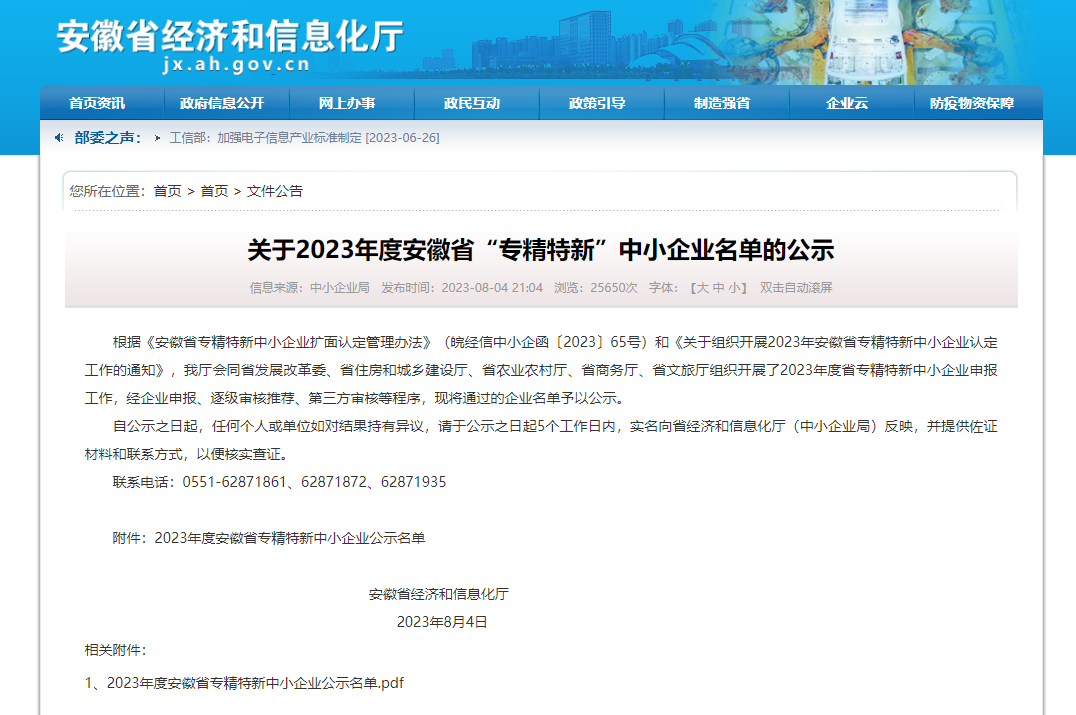 喜報(bào)!環(huán)通公司成功上榜2023年度安徽省 “專精特新”中小企業(yè)名單