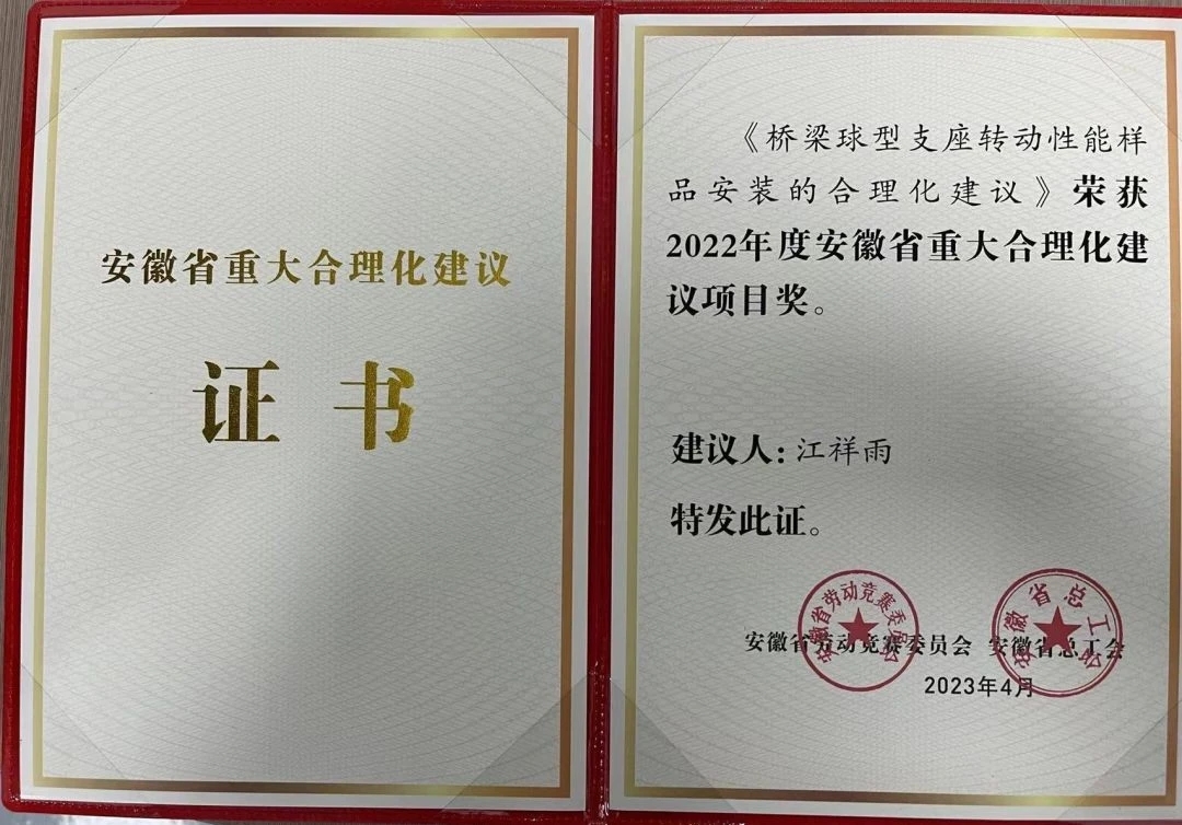 喜報一:近日,安徽省總工會頒發(fā)2022年度重大合理化建議獎項證書,環(huán)通公司榮獲2項2022年度安徽省重大合理化建議項目獎。