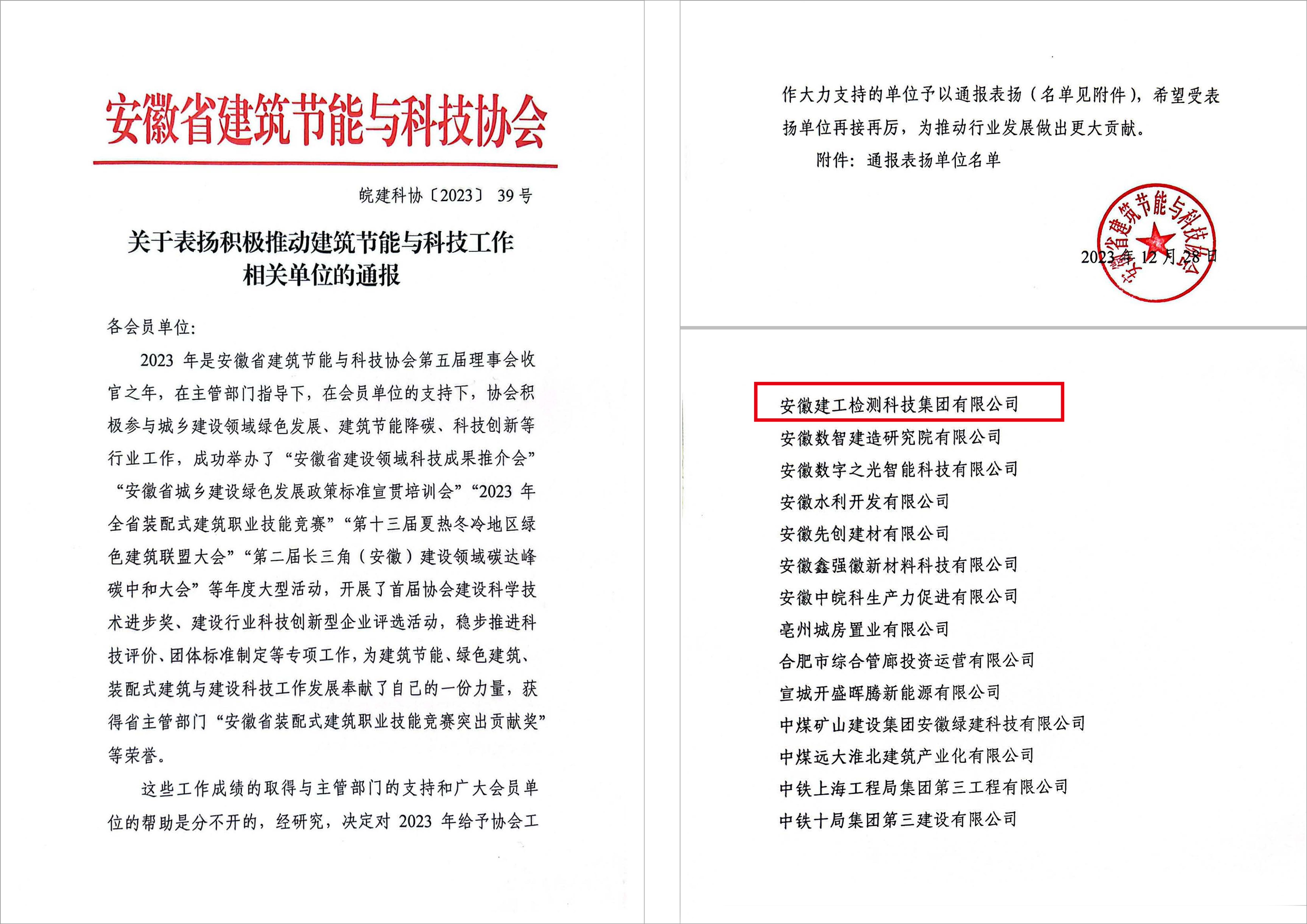 喜報(bào)!建工檢測(cè)獲安徽省建筑節(jié)能與科技協(xié)會(huì)通報(bào)表?yè)P(yáng)