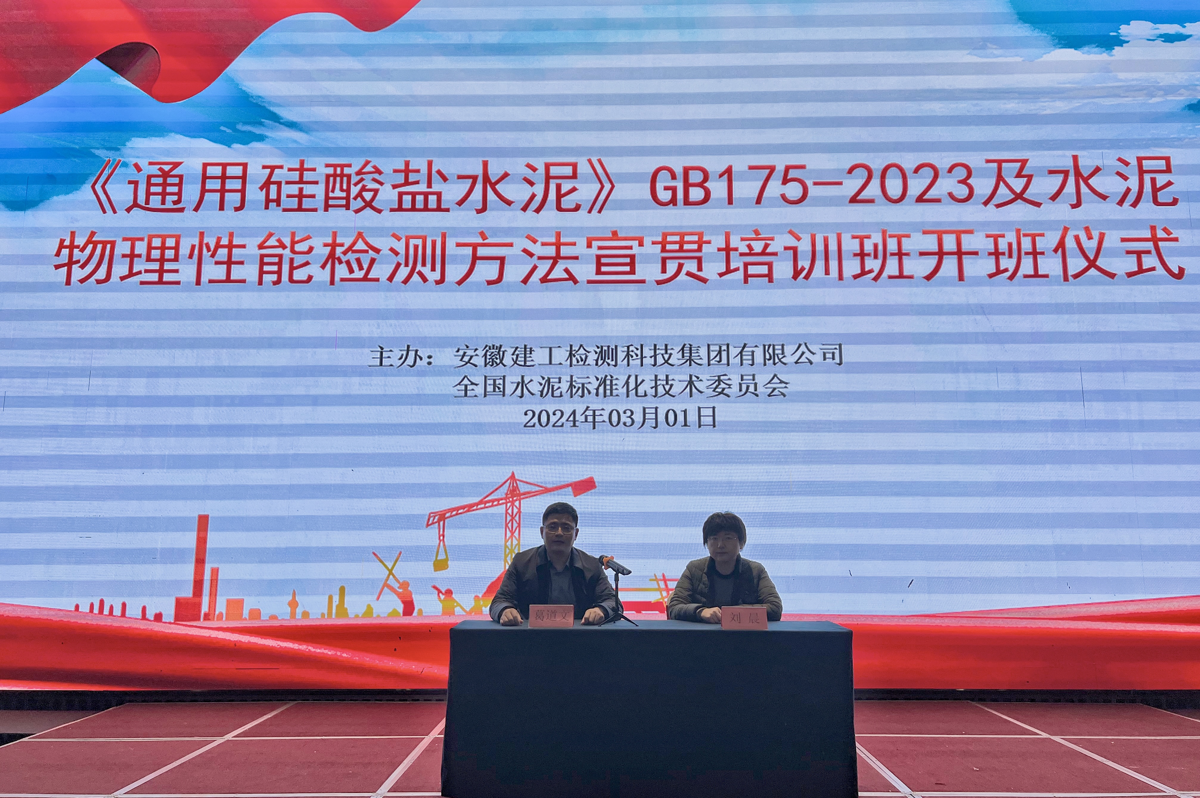 為貫徹落實建工集團黨委《關(guān)于全面深化改革推動創(chuàng)新發(fā)展的決定》,根據(jù)《建工檢測2023至2025年省內(nèi)區(qū)域布局目標及舉措建議》文件精神,加快建工檢測轉(zhuǎn)型發(fā)展、高質(zhì)量發(fā)展、大發(fā)展步伐。3月1日至2日,安徽建工檢測科技集團聯(lián)合全國水泥標準化技術(shù)委員會在合肥成功舉辦《通用硅酸鹽水泥》GB175-2023及水泥物理性能檢測方法全省宣貫培訓班,建工檢測黨委委員、副總經(jīng)理、總工程師葛道文主持開班儀式。