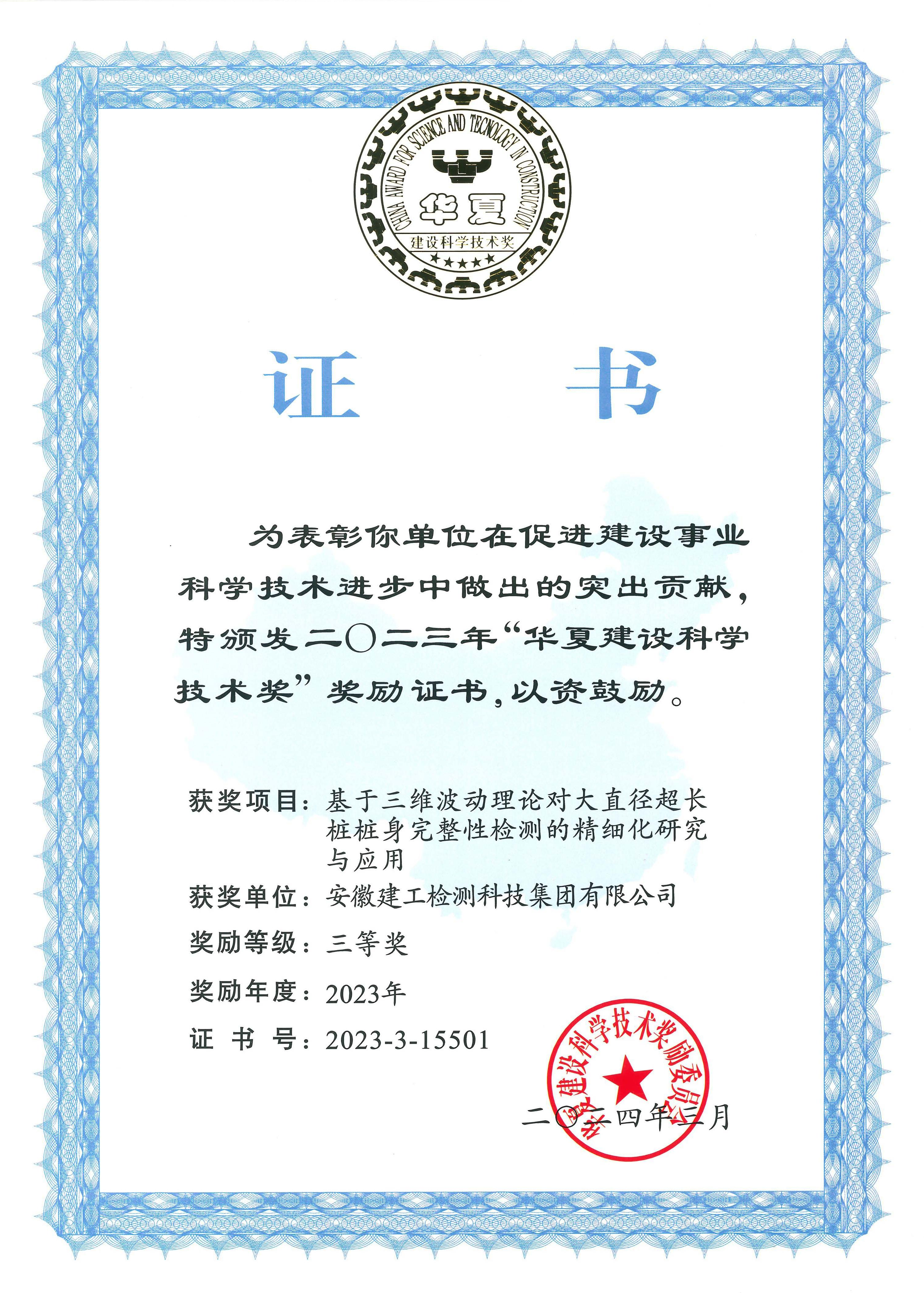 日前,華夏建設(shè)科學(xué)技術(shù)獎勵委員會發(fā)布了“2023年度華夏建設(shè)科學(xué)技術(shù)獎項(xiàng)目公告”,由建工檢測牽頭主持的《基于三維波動理論對大直徑超長樁樁身完整性檢測的精細(xì)化研究與應(yīng)用》項(xiàng)目榮獲“華夏建設(shè)科學(xué)技術(shù)獎”三等獎。華夏建設(shè)科學(xué)技術(shù)獎是全國建設(shè)科技領(lǐng)域的最高獎項(xiàng)之一,旨在獎勵在建設(shè)行業(yè)中有重要貢獻(xiàn)的組織和人員,促進(jìn)科技成果向生產(chǎn)力轉(zhuǎn)化,全面提升行業(yè)綜合技術(shù)水平。