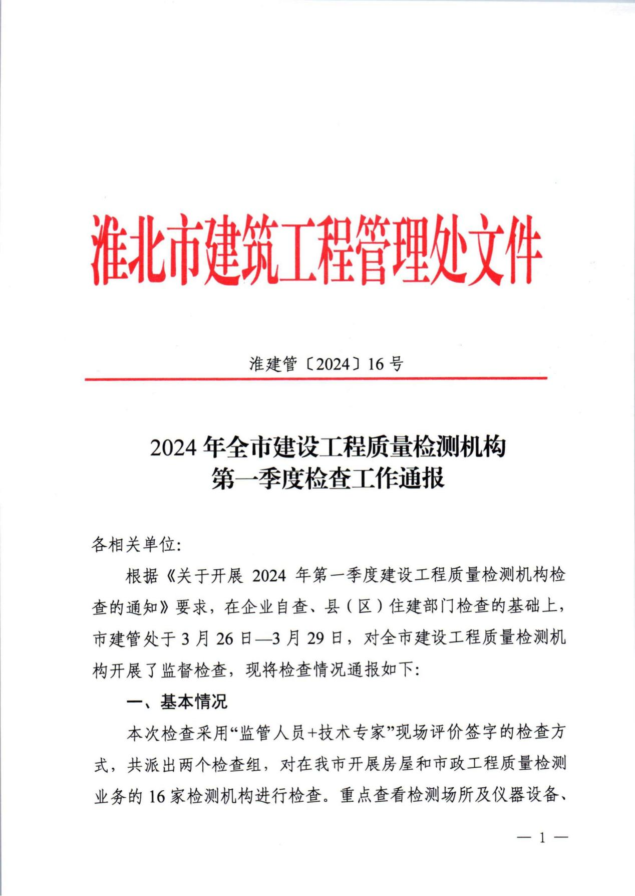 4月18日,淮北市住建局建設(shè)工程管理處公布了淮北市建設(shè)工程質(zhì)量檢測機構(gòu)第一季度監(jiān)督檢查結(jié)果,安徽建工檢測科技集團獲得“AAA”級(最高等級)信用評價,這說明建工檢測在淮北的技術(shù)力量和檢測成績得到了主管部門高度的肯定和認(rèn)可。