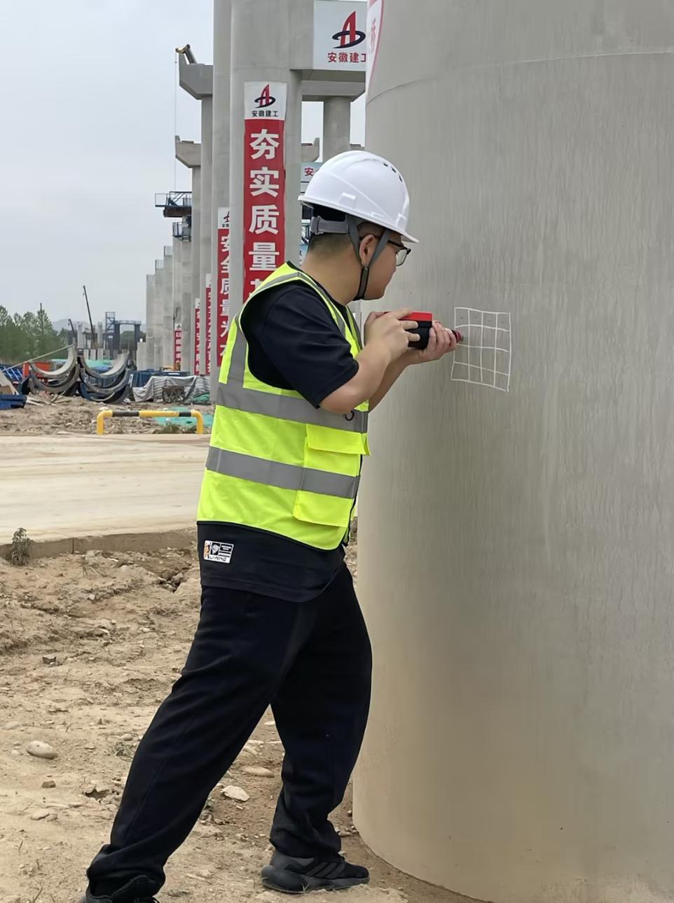 劉海波,涇青高速中心試驗(yàn)室檢測(cè)員,正在做立柱混凝土回彈強(qiáng)度檢測(cè),回彈法檢測(cè)砼抗壓強(qiáng)度是一種可靠、快速、經(jīng)濟(jì)的檢測(cè)方法,有利于提高砼抗壓強(qiáng)度檢測(cè)的準(zhǔn)確性和可靠性,保障建筑工程的結(jié)構(gòu)安全,是評(píng)價(jià)其質(zhì)量的重要指標(biāo)之一。
