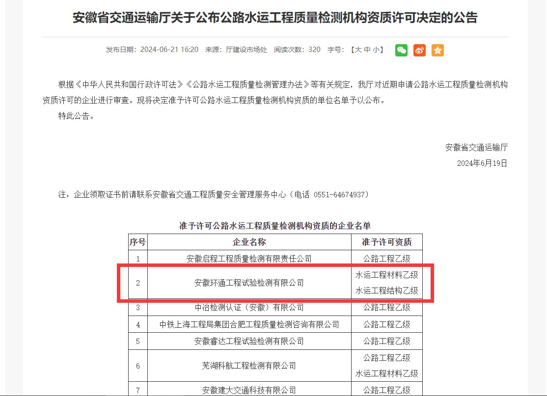 喜訊!建工檢測(cè)所屬環(huán)通公司成功取得水運(yùn)工程材料乙級(jí)和水運(yùn)工程結(jié)構(gòu)乙級(jí)兩項(xiàng)資質(zhì)