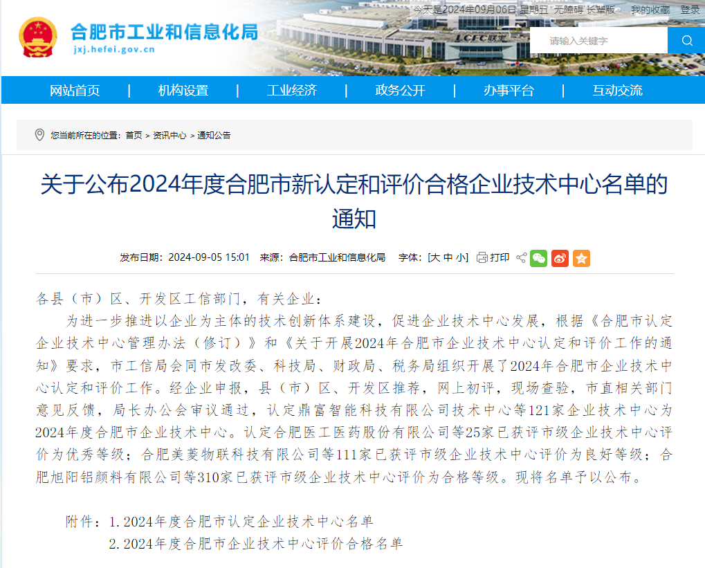 喜報(bào)!建工檢測(cè)環(huán)通公司技術(shù)中心被認(rèn)定為2024年度合肥市企業(yè)技術(shù)中心