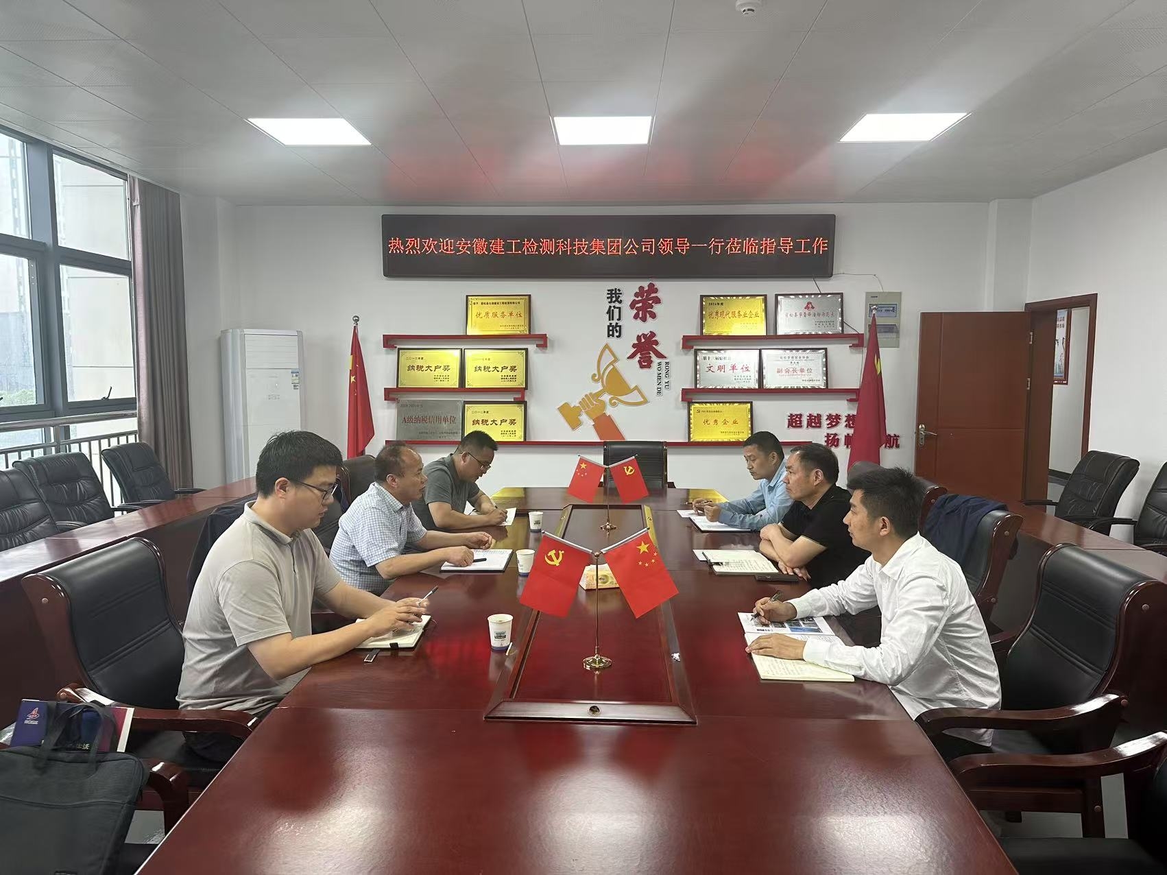 5月8日,建工檢測黨委委員、副總經(jīng)理俞振發(fā)帶隊(duì)前往宿松縣建筑工程質(zhì)量監(jiān)督站,與宿松縣建筑工程質(zhì)量監(jiān)督站黨支部書記、宿松縣云湖建設(shè)工程檢測有限公司主任賀行銳舉行工作會(huì)談。