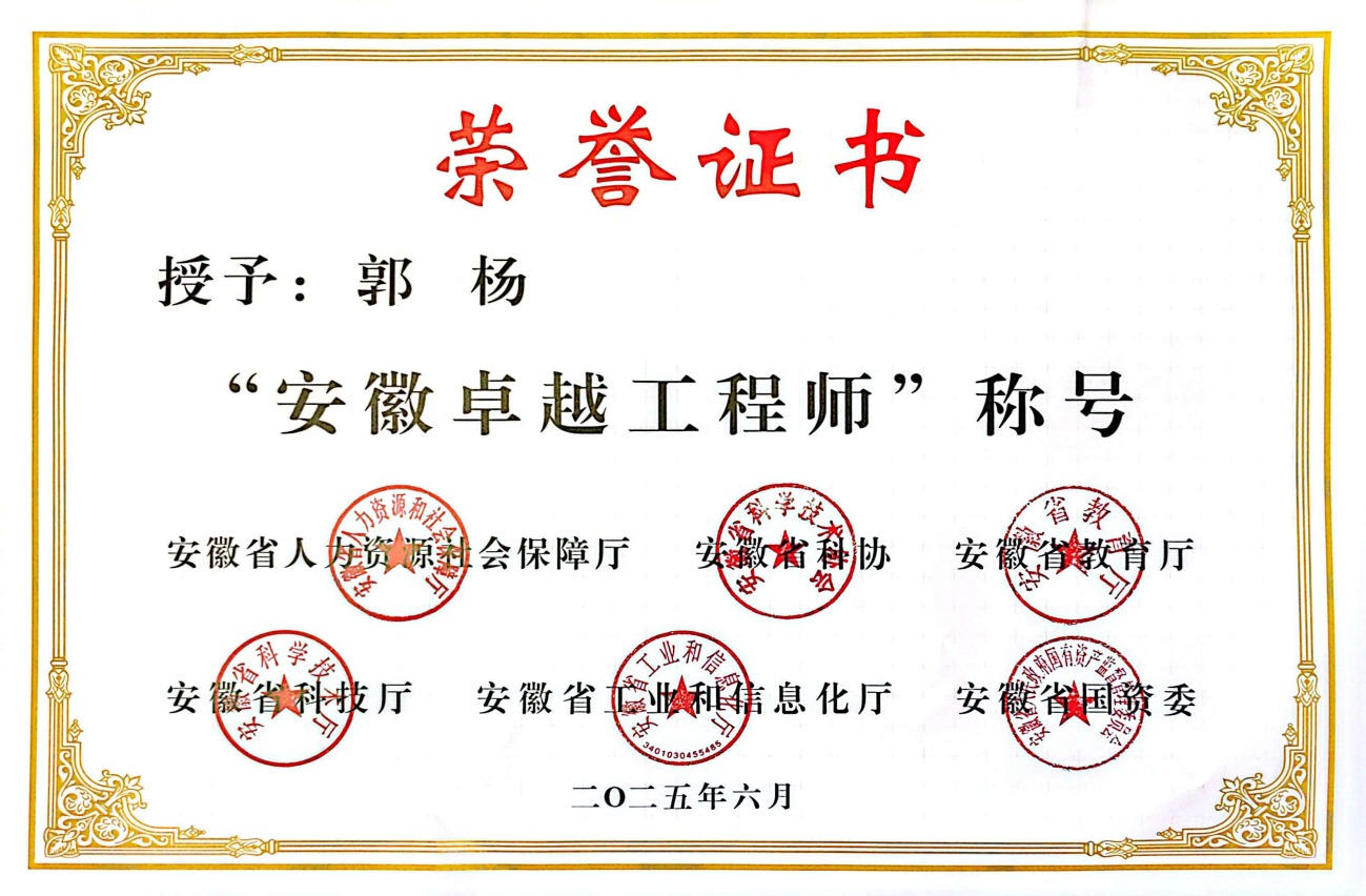 近日,從安徽省住房和城鄉(xiāng)建設(shè)廳傳來喜訊,公司黨委委員、副總經(jīng)理、工會(huì)主席郭楊憑借在工程領(lǐng)域的突出貢獻(xiàn),榮獲首屆“安徽工程師獎(jiǎng)”,被授予“安徽卓越工程師”稱號(hào)。此次評(píng)選由省人力資源社會(huì)保障廳、省科協(xié)、省教育廳、省科技廳、省工業(yè)和信息化廳、省國資委等六部門聯(lián)合開展,旨在表彰在重大工程建設(shè)、關(guān)鍵技術(shù)攻關(guān)等工作中成果顯著的工程師。