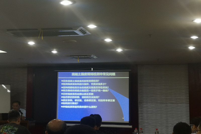 此次會議邀請了中國建筑科學(xué)研究院教授級高工彭立新老師現(xiàn)場授課。彭立新老師通過引用大量的檢測實例,并結(jié)合新的檢測規(guī)范,詳細闡述了檢測工作的基本要求、檢測方法和抽樣方案、結(jié)構(gòu)和構(gòu)件的檢測、檢測結(jié)論與判定以及建筑結(jié)構(gòu)的評定,重點講解了混凝土強度現(xiàn)場檢測中常見問題、新形勢下預(yù)拌混凝土控制要點和預(yù)拌混凝土裂縫原因分析與防止措施,對進一步促進或推動現(xiàn)場檢測工作具有較強的理論指導(dǎo)性和應(yīng)用性。