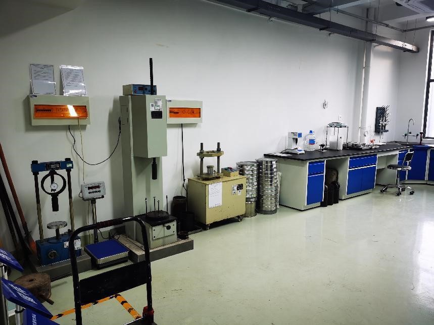 土工試驗室主要承擔(dān)土的擊實、液塑限、顆粒分析、承載比和自由膨脹率等試驗;主要儀器和設(shè)備有電動擊實儀、表面振動壓實儀、路面材料強度儀、CBR測定儀、液塑限聯(lián)合測定儀、土壤自由膨脹率測定儀等。