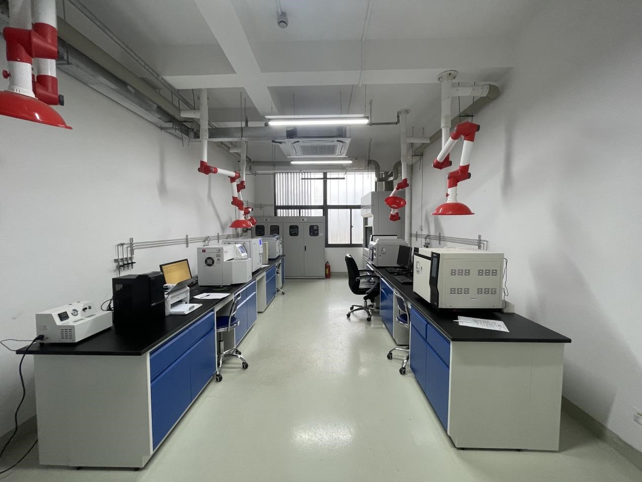 該試驗室為環(huán)境與衛(wèi)生測評所色譜試驗室(一),功能主要包括塑膠跑道原材料和成品樣塊檢測,硅PU原材料和成品樣塊檢測,人造草坪檢測等。檢測分析項目包括多環(huán)芳烴、鄰苯二甲酸酯類化合物、苯并芘、VOCs、苯系物、MOCA、短鏈氯化石蠟、TDI和MDI、苯、甲醛、TVOC等化學(xué)有害物質(zhì)和拉伸強度、拉斷伸長率、垂直變形、沖擊吸收、阻燃性能、物理性能等。主要儀器設(shè)備包括超聲波清洗器、7820A-5977B氣質(zhì)聯(lián)用儀、7820A氣相色譜儀和熱重分析儀等。