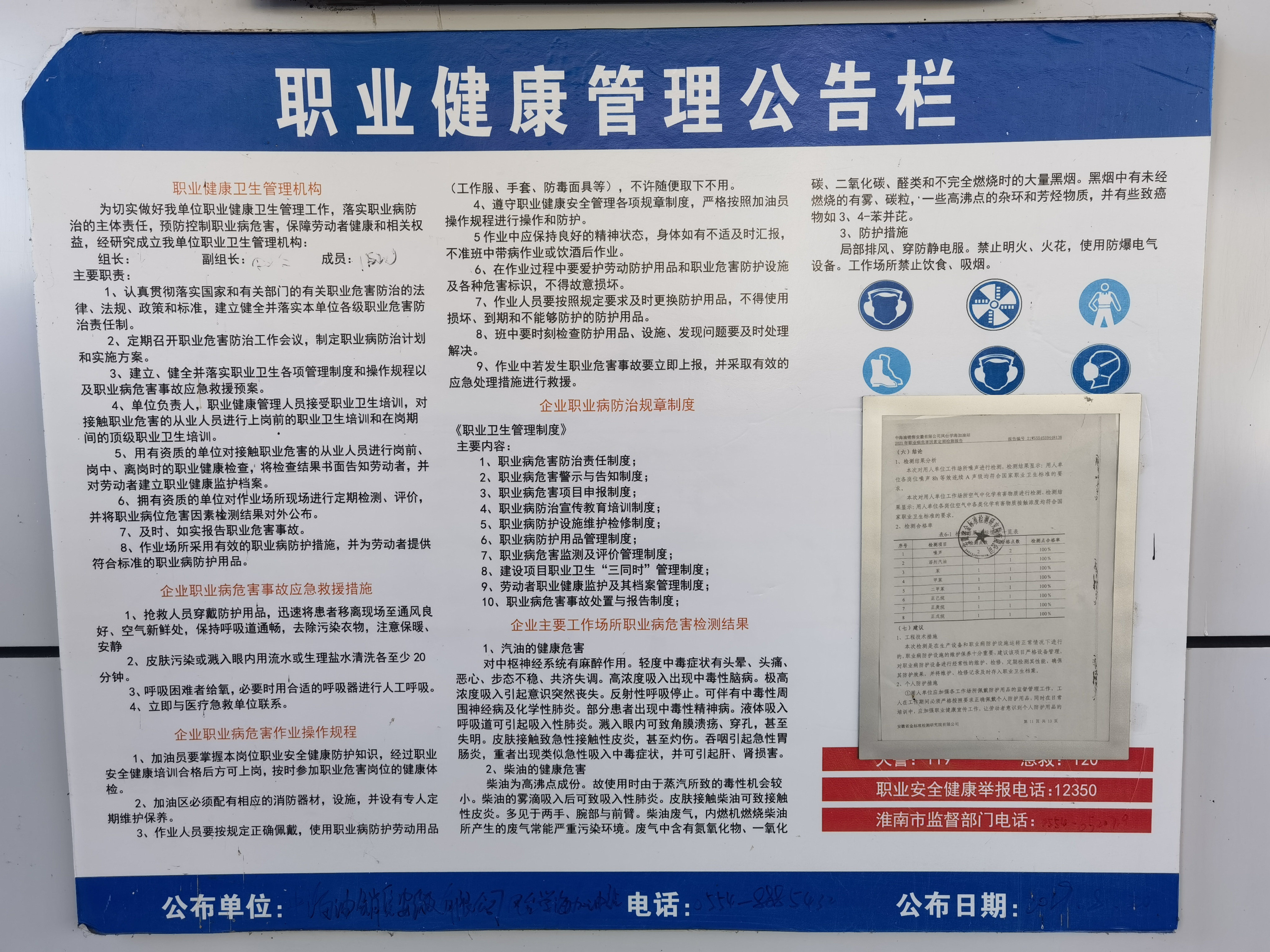 中海油銷售安徽有限公司鳳臺學(xué)海加油站職業(yè)病危害現(xiàn)狀評價